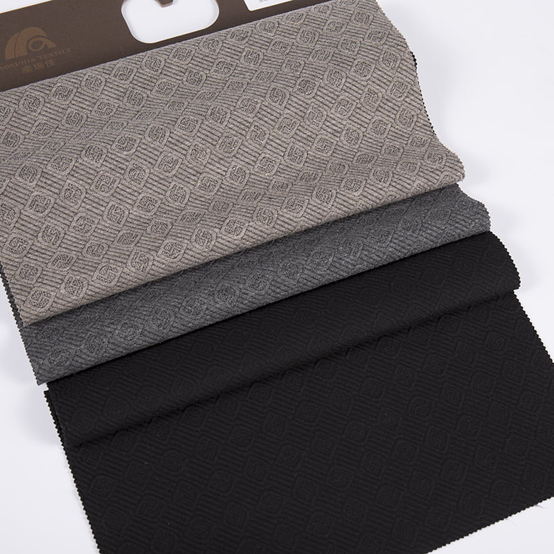 China Reliéfní diamantový keprový pletený žakárový polyester Viskóza Spandex Sportovní tkaniny na oblečení AW23019 Desktop a