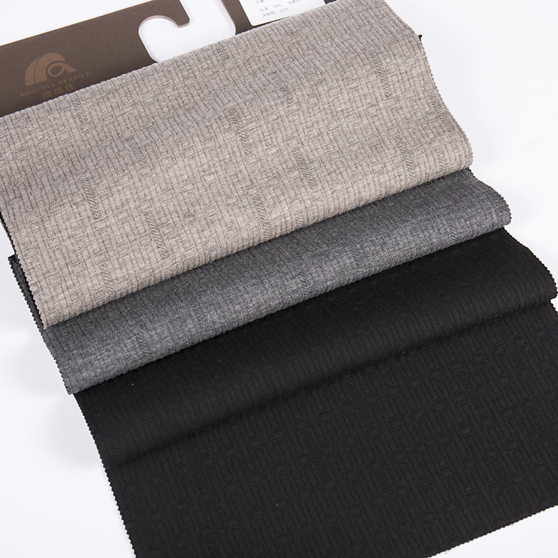 Velkoobchod Reliéfní rámy Pletené Jacquard Polyester Viskóza Spandex Tkaniny sportovního oblečení na oblečení AW23025 Továrna, nabízíme