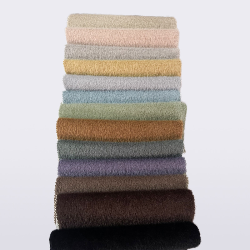 H1816 Polyesterový nylonový úplet z umělé česané norkové kožešiny zimní tkaniny pro oděvy využívá sofistikovaný poměr vysoce kvalitního polyesteru a nylonu, který zajišťuje, že tkanina má nejen vynikající odolnost proti opotřebení a odolnost proti vráskám, ale také jí dodává vynikající elasticitu a zotavení, takže i v chladné zimě může oblečení zůstat svěží a stylové a nebude se snadno deformovat. Speciálně přidaný proces imitace kartáčování simuluje jemný dotek a hřejivou texturu přírodního norka, takže každý centimetr pokožky cítí jemný obal, jako by byl v teplém objetí. Módní design látky H1816 z ní dělá všestranný kousek v zimním šatníku. Ať už jde o klasickou černou, bílou nebo módní šedou a béžovou, lze ji snadno sladit s různými styly oblečení, od jednoduchého ležérního až po elegantní formální oblečení, lze jej skvěle integrovat. Vzhledem k rychlému tempu moderního života tkanina H1816 také věnuje zvláštní pozornost snadné péči. Díky vlastnostem odolnosti proti vráskám a opotřebení je méně pravděpodobné, že se oblečení bude mačkat a rozbíjet při každodenním nošení, což výrazně snižuje potíže s žehlením a opravami. Látka má zároveň vysokou stálobarevnost a při praní snadno nebledne. I po opakovaném praní si stále dokáže zachovat původní zářivou barvu a hebkost.