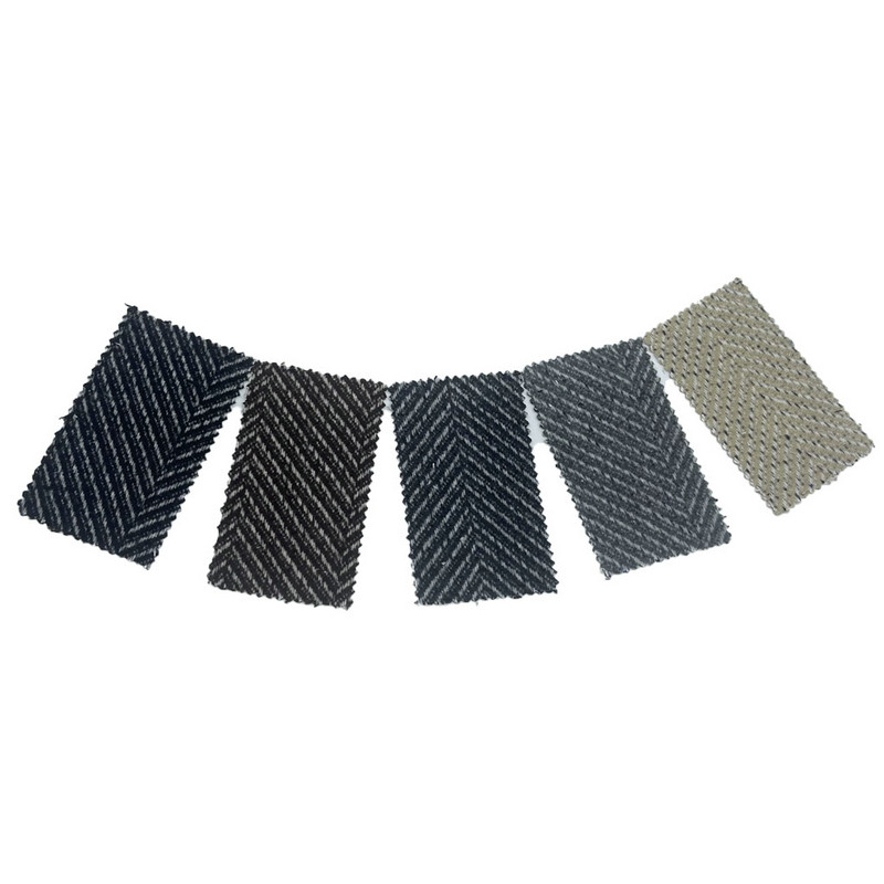 Tato látka, označená jako artikl 4134, je žakárově tkaná tvídová textilie složená z 30 % vlny a 70 % jiných vláken. S hmotností na jednotku plochy 530 g/m představuje středně těžkou až těžkou konstrukci. Látka se vyznačuje vzorem rybí kosti vytvořeným procesem žakárového tkaní, který tvoří přesné motivy ve tvaru písmene V po celém textilním povrchu. Tato výrobní technika kombinuje vizuální definici žakáru se strukturální odolností vazby rybí kosti. Složení směsi vlny přispívá k pružnosti tkaniny a odolnosti proti oděru. Tyto technické vlastnosti vedou k materiálu s jasným geometrickým vzorem a strukturální integritou, díky čemuž je použitelný pro výrobu autosedaček, kde je vyžadována jak estetická artikulace, tak dlouhodobý výkon.