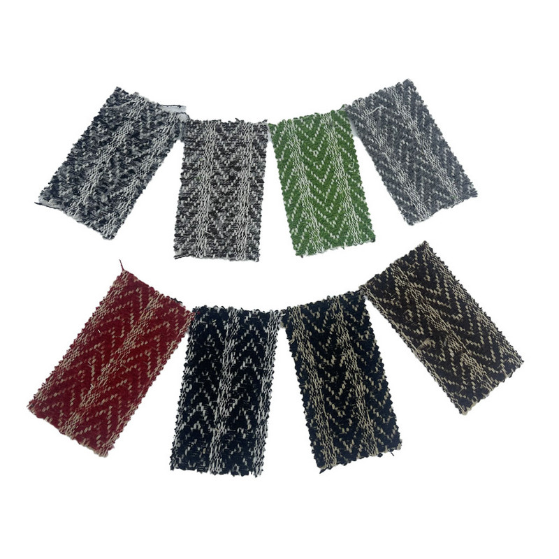 Tato látka, označená jako artikl 3467, je žakárová tvídová textilie složená z 10 % vlny a 90 % jiných vláken. S plošnou hmotností 550 g/m se jedná o těžkou konstrukci. Povrch kombinuje vzor rybí kosti s pruhovanými prvky prostřednictvím procesu žakárového tkaní. Byla aplikována povrchová úprava kartáčováním, aby se vytvořila vyvýšená plyšovitá textura, která vytváří hustý povrchový vlas, který mění vizuální i hmatové vlastnosti. Tato technika zachovává geometrickou přesnost tkaných vzorů a zároveň dodává trojrozměrnou kvalitu. Složení směsi vlny přispívá k odolnosti tkaniny a tepelnému výkonu. Tyto technické vlastnosti činí tuto tkaninu použitelnou pro projekty vyžadující definici vzoru a výraznou povrchovou strukturu.