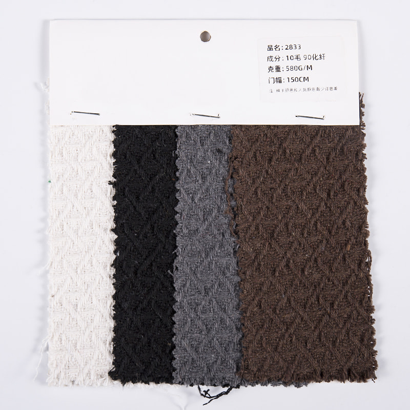 Tento embosovaný vlněný svetrový materiál na čalounění 2833 nejen kombinuje přirozené teplo vlny s odolností chemických vláken, ale také přináší jedinečný vizuální a hmatový požitek do vnitřních prostor prostřednictvím jedinečného procesu embosování. Vlna, jako poklad přírody, je známá pro svou vynikající hřejivost a prodyšnost. V této látce jsme vybrali 10% vysoce kvalitní vlny, abychom zajistili, že látka může lidem poskytnout hřejivý a pohodlný pocit. Ať už je studená zima nebo mírně chladné jaro a podzim, může se stát nepostradatelnou součástí vašeho interiéru a vaší rodině přinese pečlivou péči. Zároveň, abychom zlepšili odolnost a praktičnost látky, přidali jsme 90 % chemických vláken. Chemické vlákno se svou dobrou odolností proti mačkavosti, odolností proti opotřebení a snadnou údržbou usnadňuje čištění a údržbu této tkaniny při zachování měkkého omaku vlny. Ať už se používá jako povlak na pohovku, povlak na polštář nebo jako dekorace interiéru, jako je koberec, prokazuje vynikající odolnost a praktičnost. Prostřednictvím přesných strojů a vynikajících dovedností řemeslníků prezentujeme jemné a vrstvené reliéfní vzory na látce. Tyto vzory jsou nejen krásné a elegantní, ale také mohou vnitřnímu prostoru přidat trojrozměrnost a vrstvení, díky čemuž bude vaše domácí prostředí teplejší a stylovější.