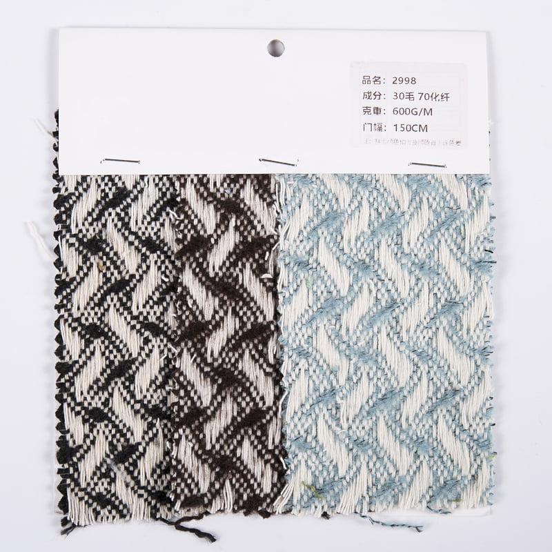 Tato módní vlněná tkanina z chemických vláken pro bundu 2998 je pečlivě vybrána s vědeckým poměrem 30 % vysoce kvalitní vlny a 70 % vysoce výkonných chemických vláken, jehož cílem je přinést vám nebývalý zážitek z nošení a vizuální požitek. Vlna, posel tepla přírody, je známá pro svou vynikající hřejivost a prodyšnost. 30% podíl vlny v této látce nejen dodává bundě přirozený měkký omak, ale také zajišťuje, že tělo může být udržováno v teple a pohodlí i v chladném období. Přirozený lesk a jemná textura vlny dává bundě vyniknout v každém detailu a odhaluje nenápadnou a luxusní atmosféru. Přídavek 70% vysoce kvalitního chemického vlákna je dokonalým střetem technologie a módy. Chemické vlákno se svými vlastnostmi odolnými proti opotřebení, mačkavosti a snadnou údržbou výrazně zlepšuje trvanlivost a praktičnost tkanin. To nejenže znamená, že bunda bude při každodenním nošení více křupavá a stylovější, čímž se omezí námahy s péčí o ni, ale také zajistí, že oblečení zůstane jako nové po dlouhou dobu s jasnými barvami, které nevyblednou. Přídavek chemického vlákna také chytře vyvažuje hřejivost a lehkost vlny, díky čemuž je celá bunda hřejivá a přitom módní, takže se snadno zvládá různé příležitosti. Tato módní vlněná tvídová bunda z chemických vláken ukazuje důmyslnou kombinaci retra a modernosti s jedinečným procesem tvídového tkaní. Patchwork textura nejen obohacuje vizuální hierarchii, ale také dodává ležérní a neomezený módní přístup. Ať už v kombinaci s ležérními kalhotami nebo elegantní sukní, může snadno ukázat osobní kouzlo a mimořádný vkus nositele.