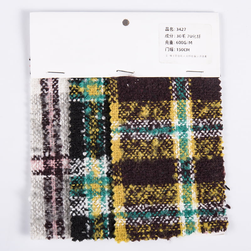 Tweed Tweed Fabric For Shirts z žakárové smyčky 3427 je produkt z vysoce kvalitní tkaniny vytvořený pečlivým přizpůsobením a vynikajícím řemeslným zpracováním. Látka je vědecky namíchaná z 30 % výběrové vlny a 70 % vysoce kvalitních chemických vláken. Jeho cílem je spojit přirozené výhody vlny s praktickými vlastnostmi chemických vláken, aby vyhovovaly dvojím potřebám moderního oblečení na pohodlí a odolnost. Vlna, jedna z hlavních složek tkanin, je známá pro svou vynikající hřejivost, prodyšnost a hebkost. V této látce přidává přídavek vlny nejen dobré tepelně izolační vlastnosti, což umožňuje košili poskytovat teplé a pohodlné nošení v chladných obdobích, ale přirozená struktura vláken vlny také pomáhá regulovat vlhkost lidského těla a udržet vás v suchu. . , zlepšit celkový komfort nošení. Přídavek chemických vláken dále zlepšuje praktické vlastnosti tkaniny. Chemické vlákno se svou vysokou pevností, dobrou odolností proti opotřebení a snadnou údržbou poskytuje látce dobrou odolnost proti mačkavosti a trvanlivost, což umožňuje košili zachovat si svěží a stylový vzhled i po mnohanásobném nošení a praní. Kromě toho směs chemických vláken také usnadňuje péči o látku, snižuje únavnou každodenní údržbu a zlepšuje pohodlí při nošení. Řemeslné zpracování žakárové obručové příze je vrcholem této látky. Díky precizní technologii tkaní jsou jedinečné vzory a textury nenápadně integrovány do látky, díky čemuž látka vizuálně představuje jemný a bohatý pocit vrstvení. Tento proces nejen zvyšuje dekorativní hodnotu látky, ale také dodává produktu jedinečnou osobitost a styl, díky čemuž může košile zobrazovat nenápadný a luxusní styl v obchodních situacích nebo ve volném čase.