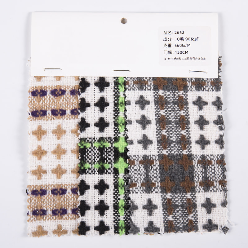 Jacquard Wool Tweed Fabric In China 2662 je profesionální látkový produkt, který kombinuje tradiční řemeslo s moderní optimalizací materiálů. Látka je namíchaná z 10% vybrané vlny a 90% vysoce výkonného chemického vlákna. Tato pečlivě vyvážená kombinace materiálů je navržena tak, aby vyvážila přirozenou hřejivost vlny a trvanlivost a odolnost proti mačkavosti chemických vláken, což zajišťuje, že látka je pohodlná a zároveň má dobrou praktičnost a odolnost. Pokud jde o technologii výroby, látka 2662 využívá pokročilou technologii žakáru. Přesnou technologií tkaní se na povrchu látky vytvářejí složité a uspořádané vzory, které nejen zesilují vizuální efekt látky, ale také zvyšují vrstvení a trojrozměrný dojem látky. Díky použití žakárové technologie má každý kus látky jedinečnou texturu a detaily, které plně demonstrují dokonalou kombinaci tradičního řemesla a moderní technologie. Z hlediska výkonu má tkanina 2662 dobrou prodyšnost, absorpci vlhkosti a udržení tepla. Přídavek vlny umožňuje látce zůstat v teple v chladných obdobích, zatímco směs chemických vláken zlepšuje prodyšnost a absorpci vlhkosti látky, což umožňuje nositeli zůstat v pohodlí ve všech druzích klimatických podmínek. Kromě toho má tkanina dobrou odolnost proti vráskám a oděru a může zůstat plochá a neporušená po dlouhou dobu, čímž se prodlužuje životnost oděvu. Z hlediska oblastí použití je látka 2662 vhodná pro výrobu nejrůznějších oděvů a doplňků. Ať už se používá k výrobě špičkových business bund, elegantních šatů nebo doplňků v retro stylu, může tato tkanina dodat produktu jedinečné módní kouzlo se svou jedinečnou texturou a texturou. Zároveň její stabilní barevný výkon a vynikající odolnost také činí tuto látku ideální volbou pro návrháře a výrobce, kteří dbají na kvalitu a design.