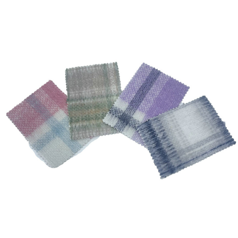 Tato látka, označená jako artikl 3940, je žakárová textilie složená z 10 % vlny a 90 % jiných vláken. S plošnou hmotností 600 g/m představuje konstrukci těžké hmotnosti. Fialový povrch kombinuje kostkovaný vzor s texturou s dlouhým vlasem, dosaženým pomocí specializovaných technik žakárového tkaní a konečné úpravy. Tento výrobní proces vytváří na povrchu tkaniny prodloužené smyčky vláken, což vede k výrazné trojrozměrné struktuře. Složení směsi vlny přispívá k tepelně izolačním vlastnostem a odolnosti tkaniny. Tyto technické vlastnosti vytvářejí materiál se značnou hloubkou a objemem povrchu, díky čemuž je použitelný pro svrchní vrstvy, kde je vyžadována zvýšená hřejivost a texturní rozměr.
