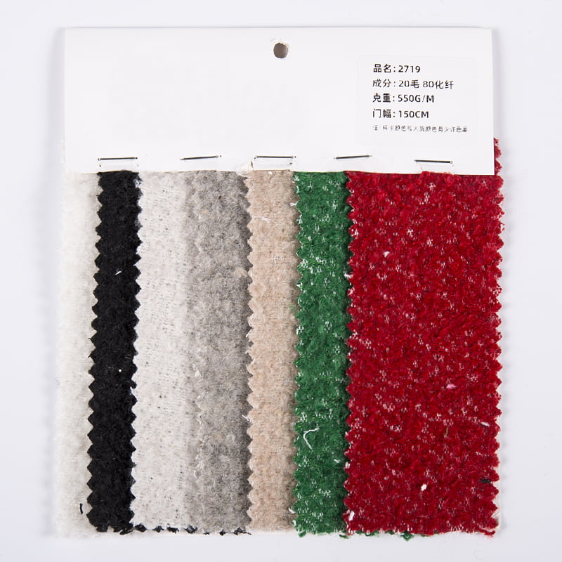Multicolors Berber Fleece Tweed Fabric For Women Clothing 2719 je pečlivě smíchán s 20 % vysoce kvalitní vlny a 80 % vysoce výkonného chemického vlákna. Nejen, že si zachovává přirozené teplo a měkký dotek vlny, ale také plně podporuje odolnost proti opotřebení, odolnost proti mačkání a snadnou údržbu chemického vlákna. Přídavek vlny umožňuje látce poskytnout dostatečné teplo v chladných ročních obdobích, zatímco příměs chemických vláken zajišťuje tuhost a odolnost látky, což umožňuje každému dámskému oblečení udržet si svůj tvar a barvu po dlouhou dobu. Designová inspirace vícebarevného berberského vlněného tvídu pochází ze střetu tradiční a moderní kultury. Jedinečné sladění barev a hrubé vzory se prolínají a vytvářejí jedinečný vizuální dojem. Ať už se jedná o jasné a jasné kontrastní barvy nebo nenápadné a klidné sousední barvy, mohou být na této látce dokonale prezentovány. Toto barevné provedení nejen obohacuje vizuální úroveň dámského oblečení, ale přináší nositelce více možností sladění a výrazu osobnosti. Pokud jde o výrobní technologii, používáme pokročilou textilní technologii, abychom zajistili, že každý centimetr látky bude rovný a jemný a bude se cítit pohodlně.