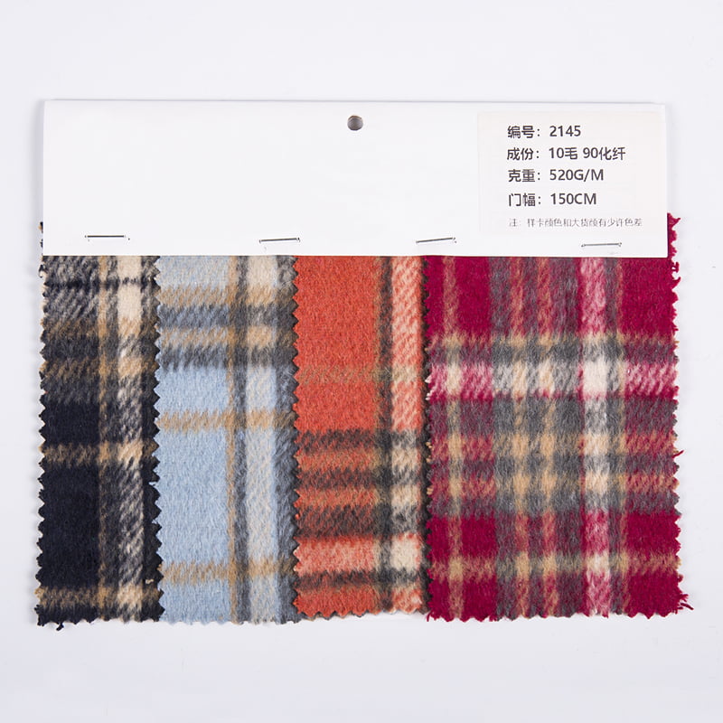 Tartanová kostkovaná okenní tabule Vícebarevná vlněná polyesterová tvídová tkanina 2145 má jedinečný skotský kostkovaný design, který chytře kombinuje tradiční a moderní prvky a ukazuje jedinečný a elegantní styl. Vzor okenní tabule je odstupňovaný a barvy jsou bohaté a rozmanité. Hlavními složkami látky jsou 10% kvalitní vlna a 90% kvalitní chemické vlákno. Přídavek vlny dodává látce přirozenou měkkost a hřejivost a dotek je jemný a pohodlný, jako by dokázal zachytit vánek a sluneční paprsky Skotské vysočiny. 90% složka chemických vláken zajišťuje odolnost proti opotřebení, mačkavost a snadnou péči o látku. Přídavek chemických vláken nejen zlepšuje odolnost látky, ale také činí celkovou texturu křehčí a stylovější a lze snadno tvarovat různé módní tvary. Proces tkaní tvídu činí tuto látku výraznější. Drsná příze propojuje jedinečnou texturu a texturu a dodává oblečení trochu retro a drsného kouzla. Zároveň tento proces také činí látku prodyšnější a dokáže udržet příjemný pocit na těle i v chladném období.