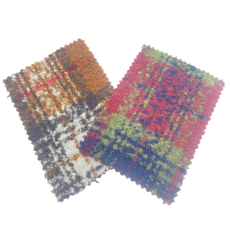Tato látka, označená jako artikl 3851, je žakárová tvídová textilie složená z 10 % vlny a 90 % jiných vláken. S hmotností na jednotku plochy 520 g/m představuje středně těžkou až těžkou konstrukci. Povrch má tartanový kostkovaný vzor vytvořený procesem žakárového tkaní, který tvoří přesné průsečíky barevných pruhů. Byla aplikována povrchová úprava kartáčováním, aby se vytvořila vyvýšená teddy-jako textura, která mění vlastnosti povrchu látky. Výsledkem této techniky je hustý povrch s krátkým vlasem, který upravuje jak vizuální hloubku, tak hmatové vlastnosti. Technické specifikace činí tuto tkaninu použitelnou pro výrobu bund, kde je vyžadována definovaná artikulace vzoru a výrazná povrchová struktura.